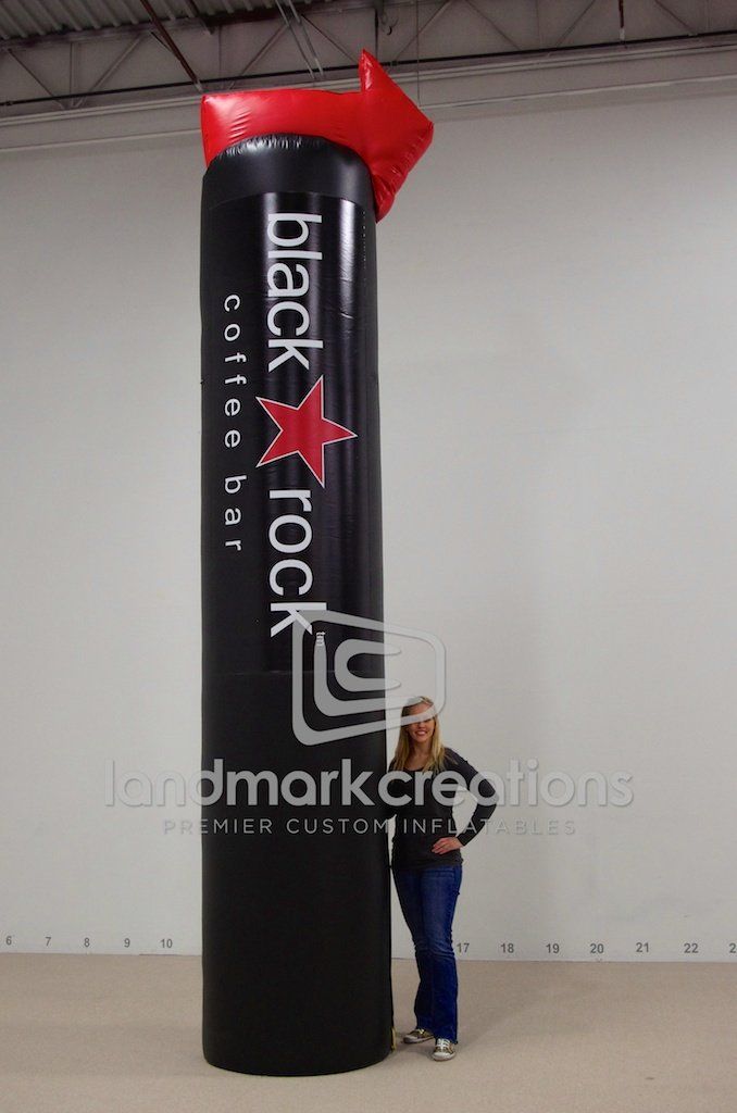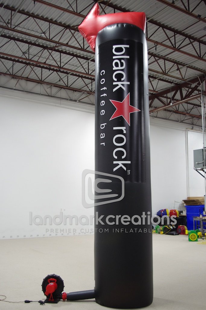 Black Rock Coffee Bar, a sit down/drive thru coffee shop, inflates this massive pylon to direct traffic to new coffee shop locations along the West Coast.