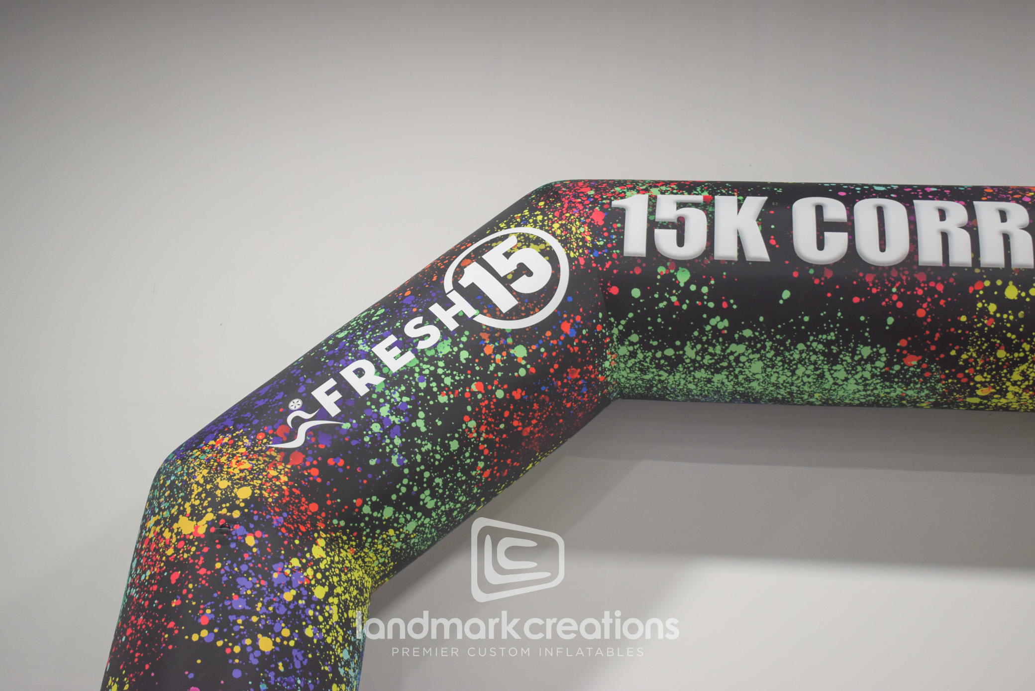Our custom inflatable Hexi Arch, designed for Brookshire Grocery Company's FRESH 15 race in Tyler, Texas, serves as a dynamic entryway for participants. This 15x26-foot archway enhances the race experience, providing a visually striking focal point that embodies the spirit of health and wellness.