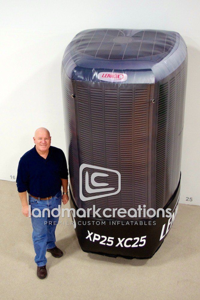 Show off your latest products with custom inflatables! Lennox International Inc. used their 8-foot-tall inflatable product replica of a Lennox air conditioner unit to promote their newest product at a sales meeting.