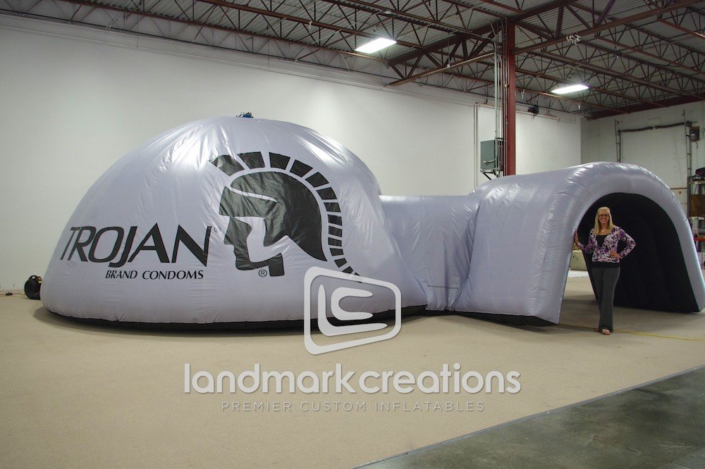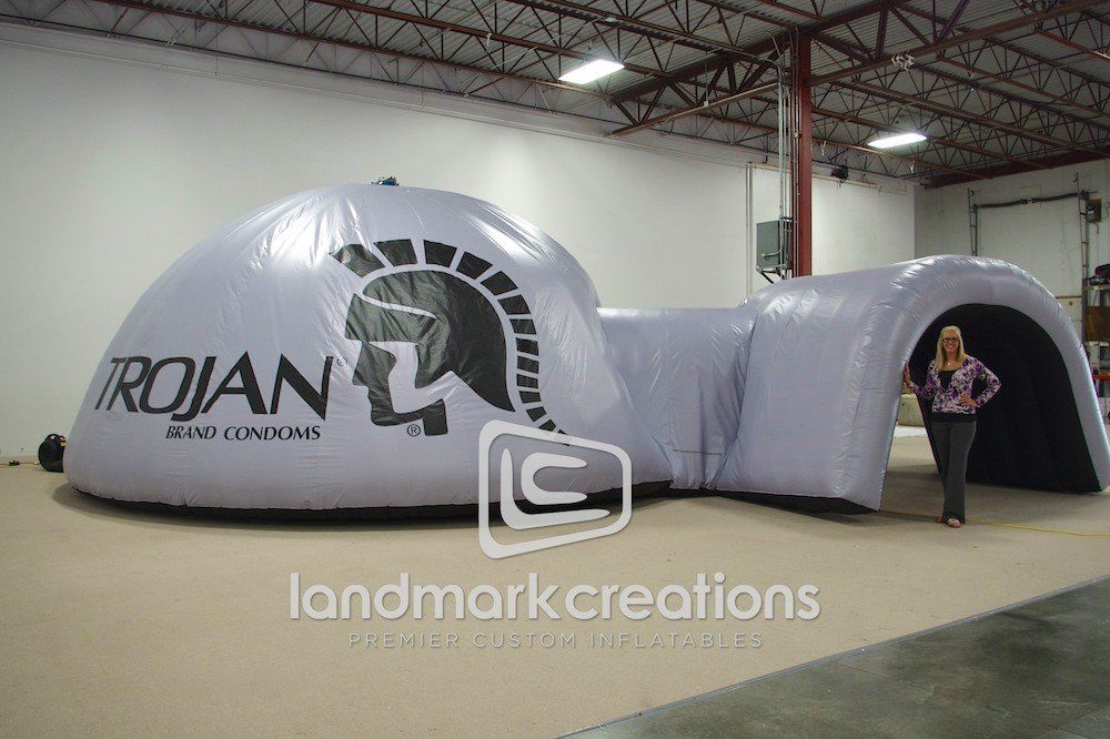 Trojan re-designed the exterior of the inflatable dome with a new graphics wrap. Trojan uses this inflatable dome throughout their mobile marketing campaign to University campuses, events and concerts.