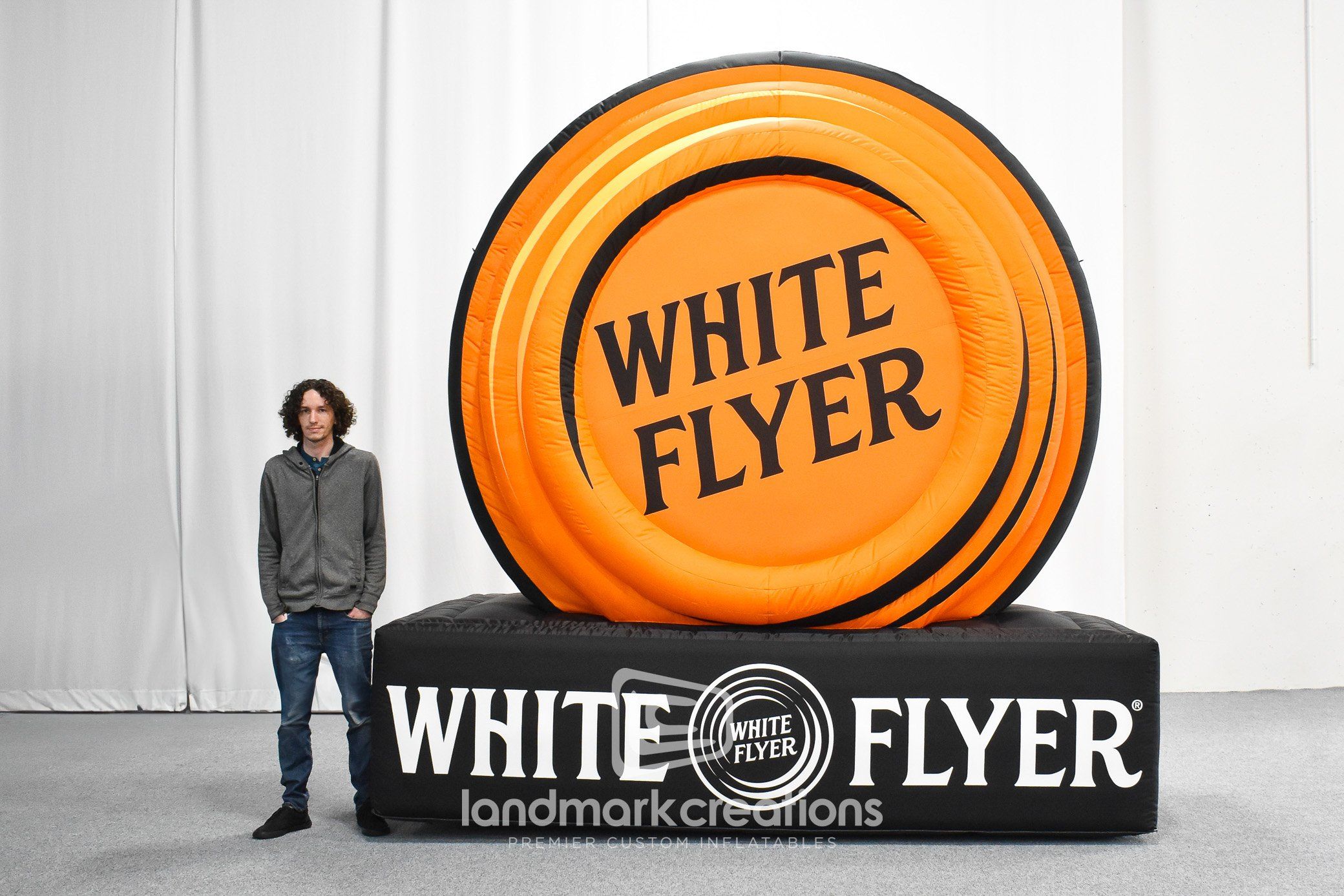 Designed for Winchester Ammunition, this custom 10x10x5 inflatable replica of a White Flyer clay target is an eye-catching centerpiece for indoor trade show displays. Its animated look and bold branding create an engaging visual experience, ideal for drawing attention at industry events. Looking to create a memorable presence at your next exhibition? Our custom inflatables can help you stand out.