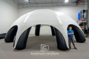 Inflatable tents offer some tremendous advantages because they are extremely mobile, lightweight and offer plug-and-play use. Quick and simple inflation, deflation, packing and shipping give you the freedom to take these domes anywhere during your mobile creative advertising campaign. Compared to stake & post tents, Landmarks domes are noticeably lighter weight which makes installation and breakdown times significantly less. If you have visions of struggling with an octopus-like camping tent… banish them! You can be up and running smoothly in under 5 minutes.
