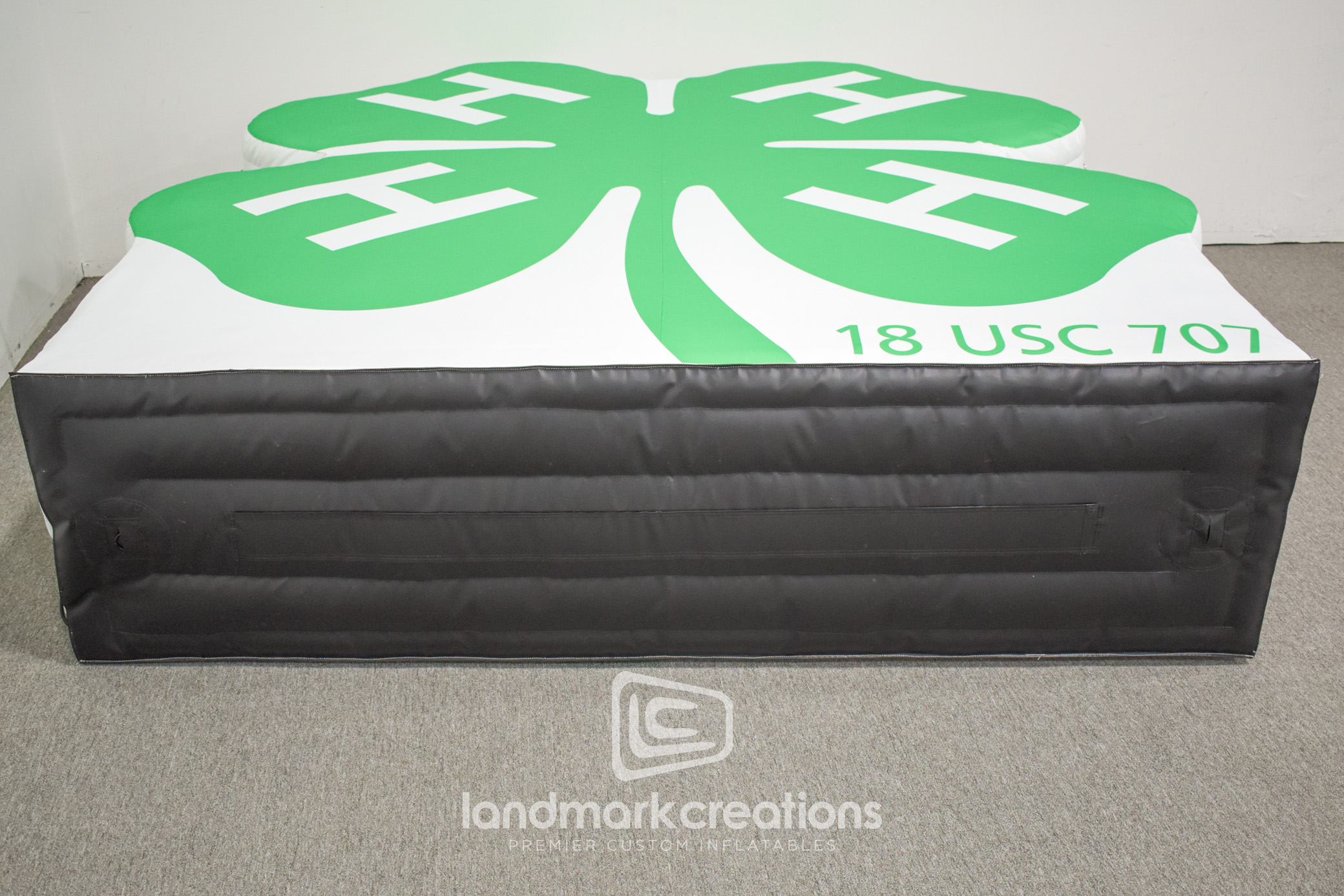 The University of Illinois partnered with Landmark Creations to create the 4H Clover inflatable, an 8 x 8 x 2-foot custom billboard designed for state and county fairs. With its iconic scalloped clover shape, this inflatable serves as a visually impactful centerpiece for promoting agriculture and community programs. Built for versatility, the 4H Clover can be installed indoors or outdoors, delivering vibrant branding for community events while celebrating the enduring legacy of 4H programs.