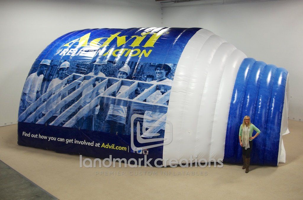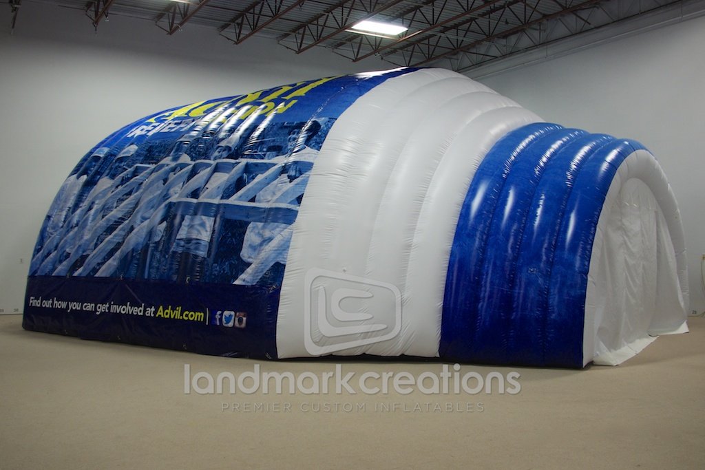 With the launch of Advil's Relief In Action campaign, honoring volunteers, they turned their classic Advil bottle into an inflatable disaster relief tent. Internally lit, this custom rehab tent can be used to provide shelter to victims or as an area for volunteers to regroup while helping others.