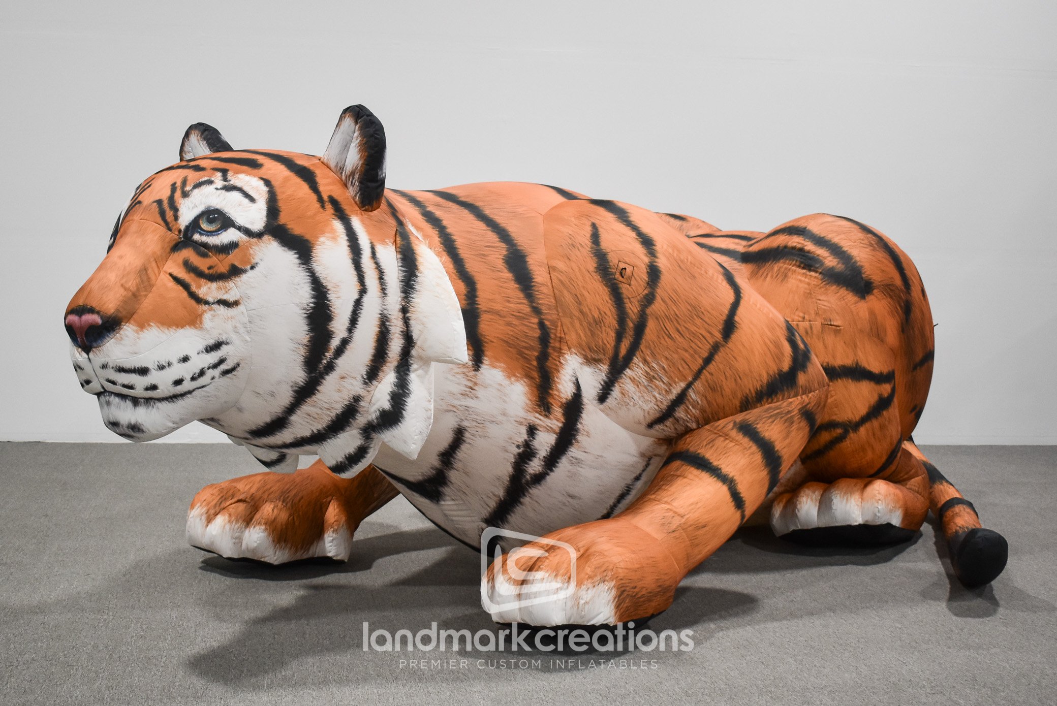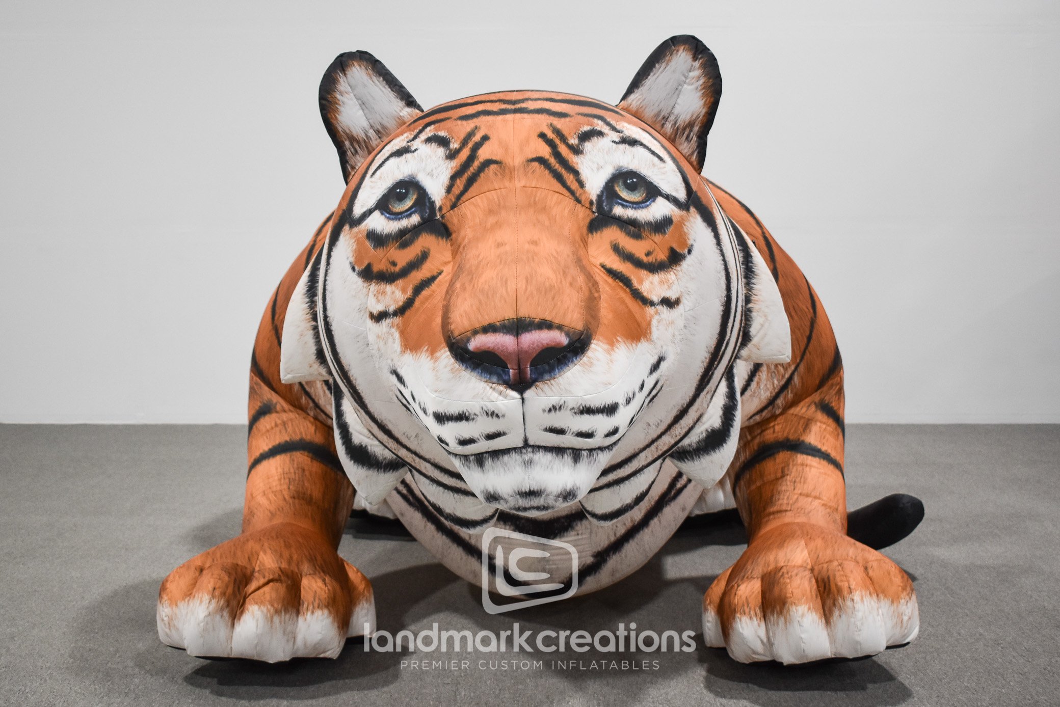 As part of the Minnesota Zoo's collection of giant animals for their outdoor exhibit "Nature Illuminated", this giant inflatable Amur tiger engages visitors as they drive through the Temperate Forest section of the event.