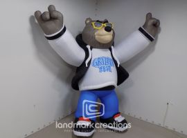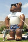 New and used car dealership, Buchanan Auto Park, strives to attract attention and increase sales during special promotions by inflating their giant bear mascot, complete with sunglasses!