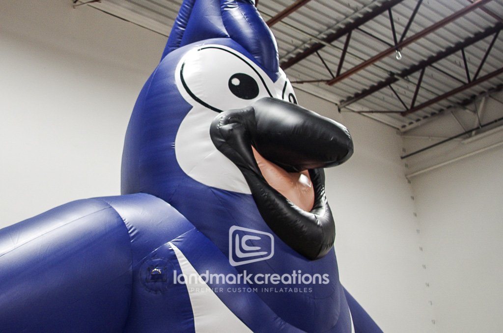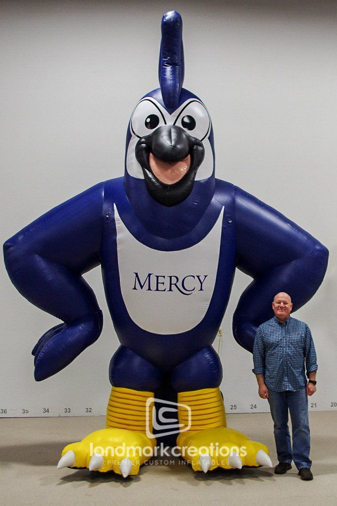 Our Lady of Mercy commissioned Landmark Creations to custom build their giant inflatable blue jay for school events.