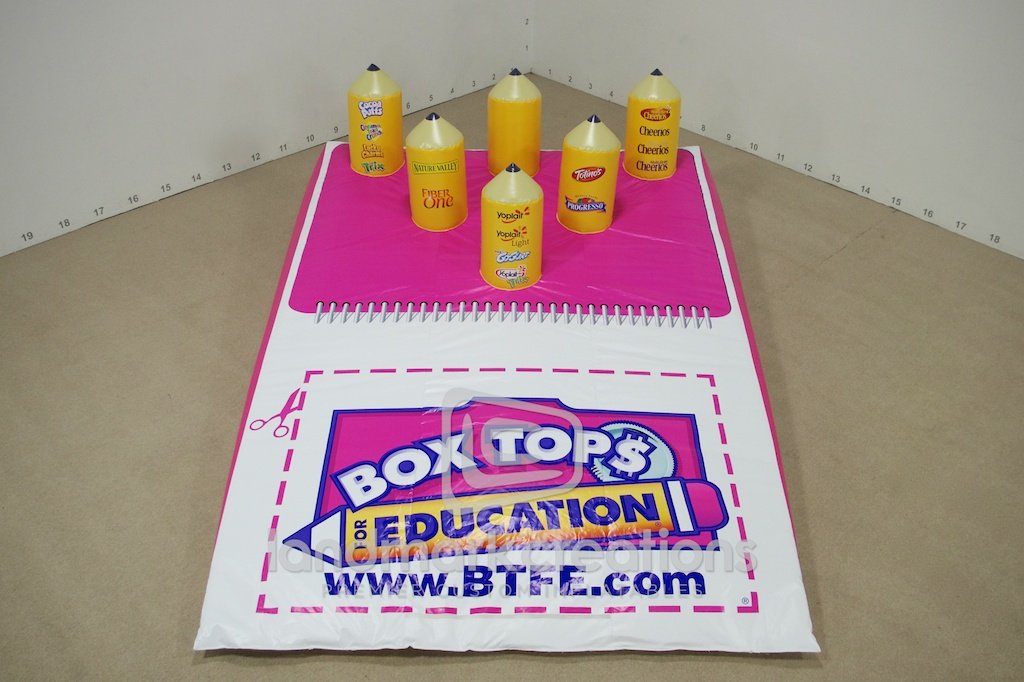 Box Tops for Education, one of the nation's largest school fundraising loyalty programs, inflates this interactive ring toss at community events to promote the program. BTFE also promoted their most popular brands by having their logos printed on the pencils!