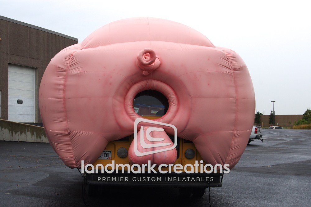 This inflatable pig cover placed over a bus was used to represent "the 1 percent." Protesters displayed the inflatable Pig-Bus outside of the presidential debates to amplify the message of wall street flushing money directly down the drain or right into their pockets.