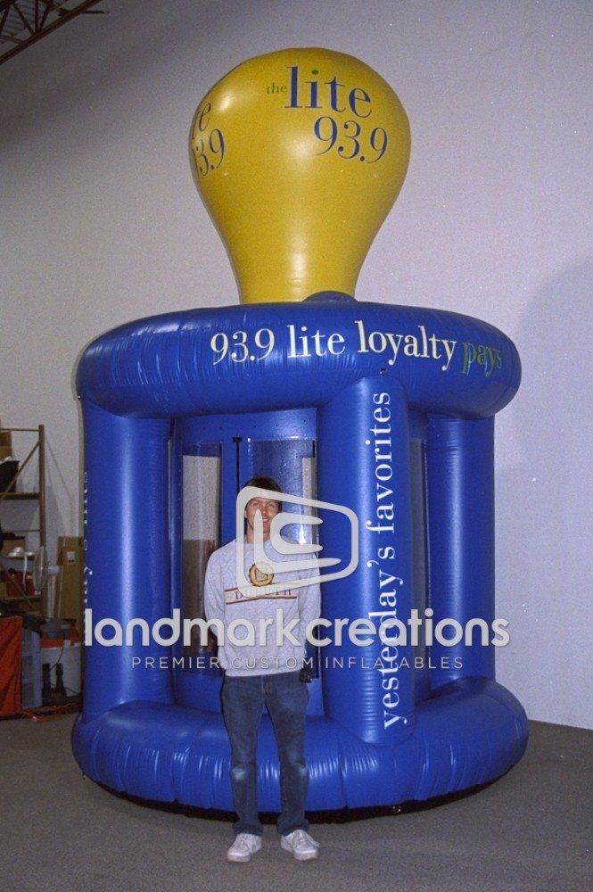 Want to stand out at your next marketing event? Inflatable air booths, like this money machine made for WLIT The Lite 93.9 FM, attract attention and encourage crowd participation.