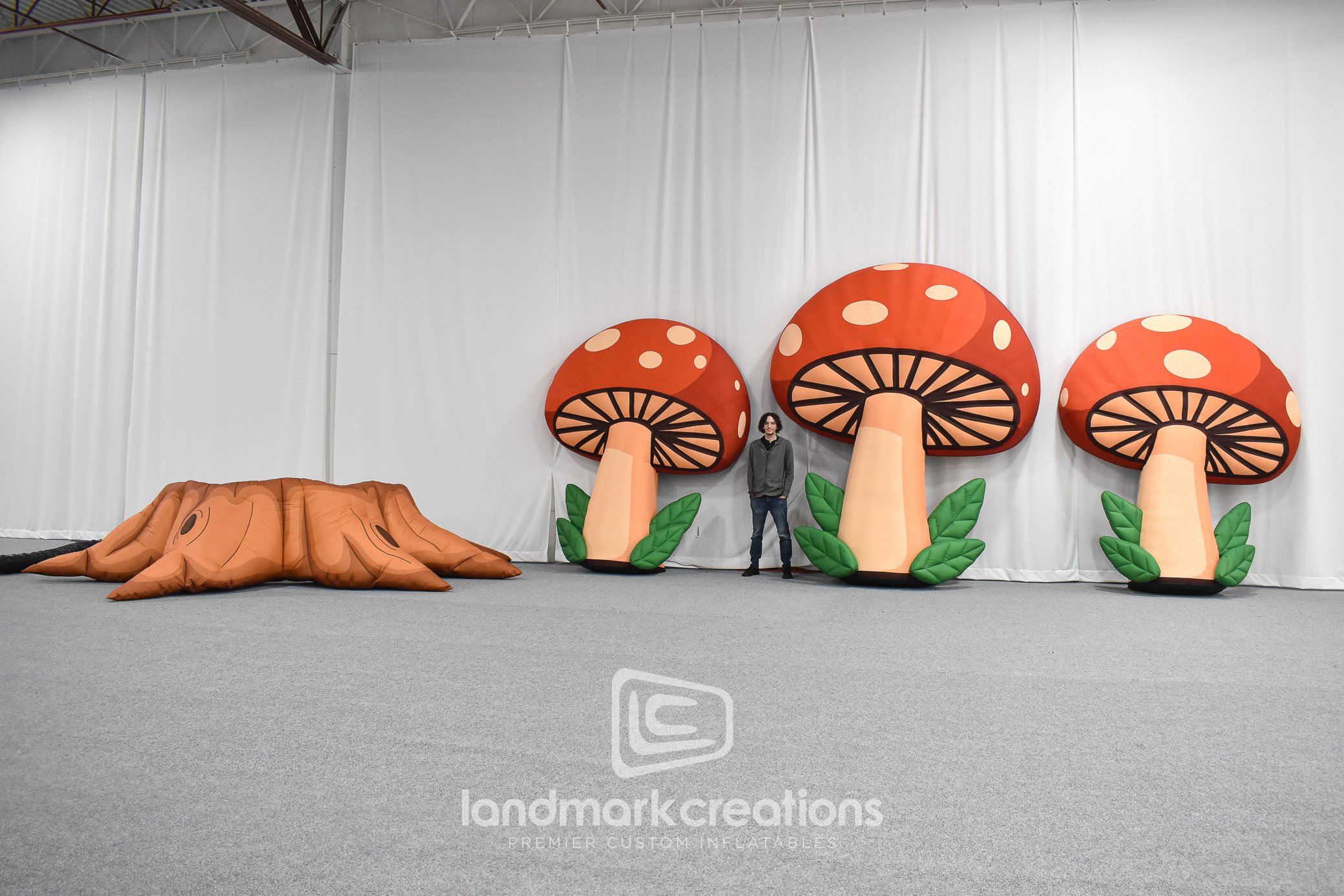This custom inflatable mushroom, created for Cavetown's 2023 tour, highlights the versatility of our stage prop designs. Standing 12 feet tall, this inflatable art installation combines organic design elements with durable craftsmanship, ensuring stability and easy integration into stage setups. Perfect for set designers looking for innovative and eye-catching visual solutions. Explore more custom inflatables for stage productions in our product gallery.