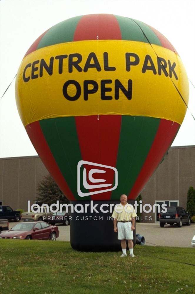 QSR restaurant chains attract new customers at grand opening celebrations with giant, custom-designed hot air shapes like this one for Central Park of America.