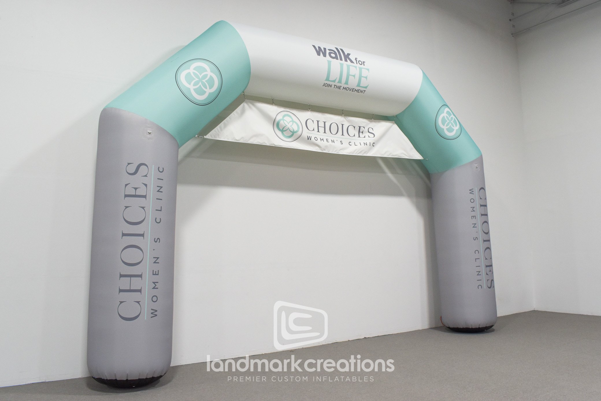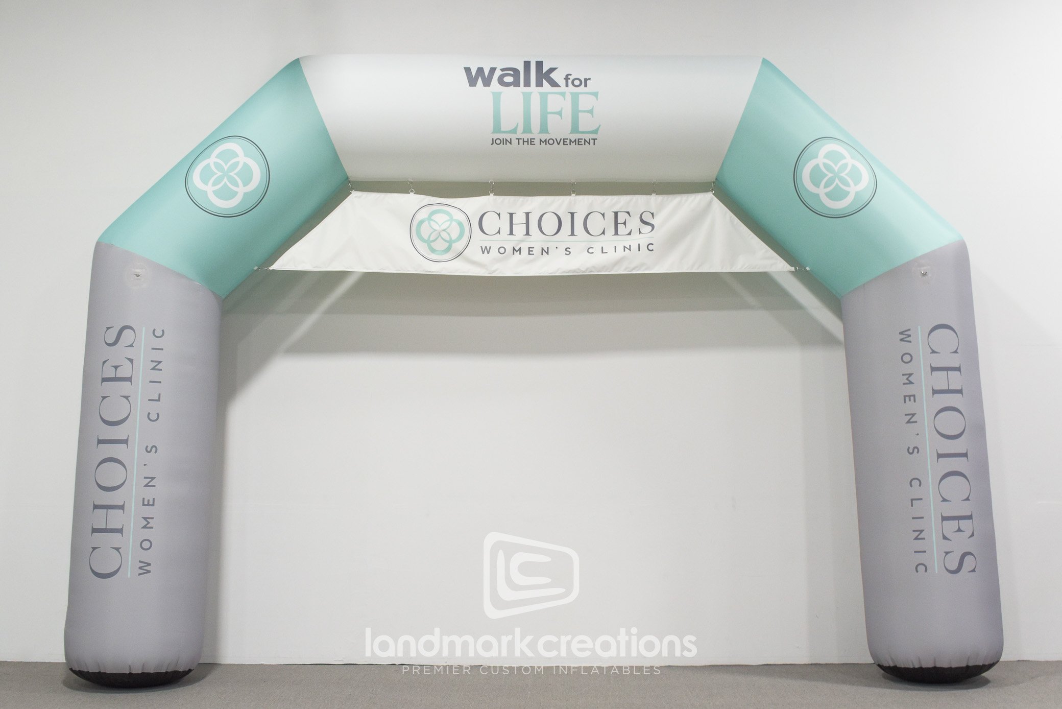 Choices Women's Clinic create custom inflatable arch for their annual Walk for Life at Blue Jacket Park in Orlando to create a strong visual impression and create brand awareness for their community fundraising event. Because inflatables pack small, it's easy for the organization to store and transport between events.
