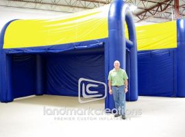 This custom inflatable q-hut, a modern version of a Quonset hut, for Clean Harbors offers a cool area for employees to mingle during corporate events.