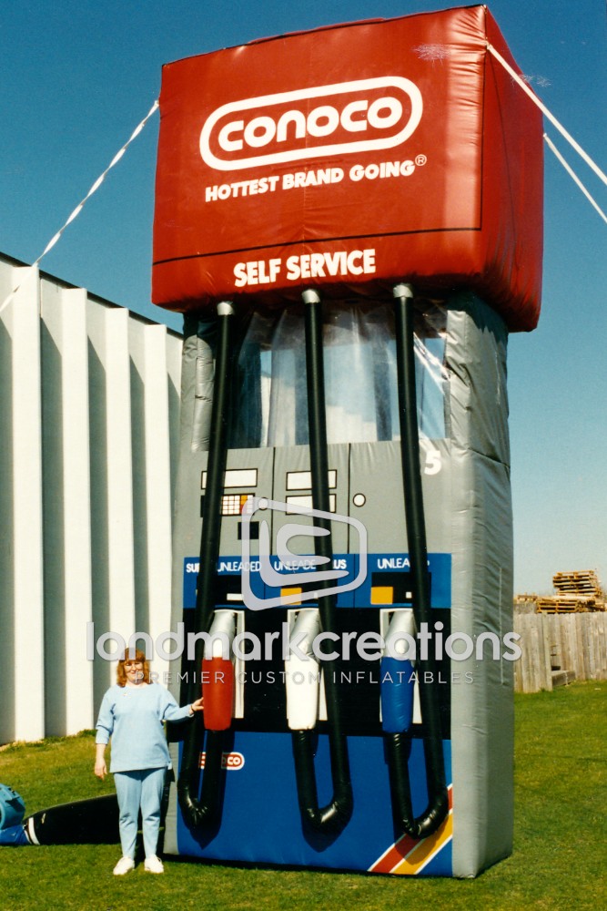 Want a creative way to increase traffic at your petroleum station or convenience store? Conoco inflated these giant gas pump replicas to increase brand awareness at marketing events.