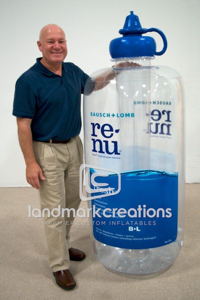 If your product has a distinct shape, like this Bausch & Lomb Renu Solution bottle, giant replicas are a perfect way to showcase your product's design elements and connect with consumers at trade shows and promotional events.