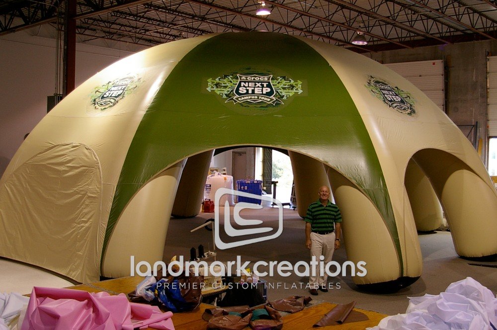 Crocs Footwear got attention while sponsoring the Next Step Campus Tour with their giant, inflatable tent. Next Step Campus Tour provided college campuses with concerts that featuring newly established artists. Crocs' branded tent increases brand awareness at each campus event.