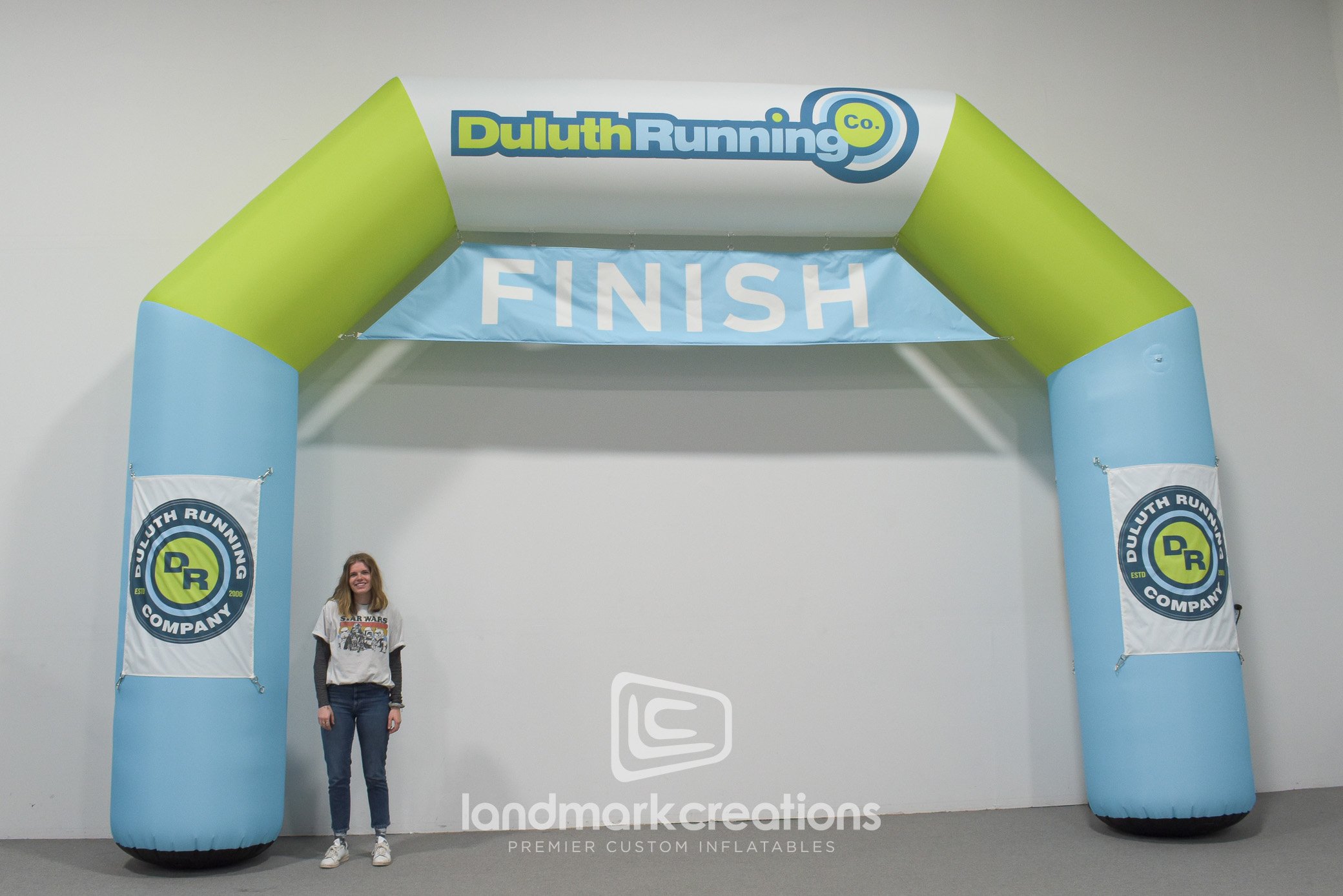 Duluth Running Co. adds a professional look to their racing events like their Pike Lake10K with a custom inflatable finish line arch. Their vivid graphics tie in with the event's branding, and the arch has removable banner space for custom event messaging or sponsor banners.