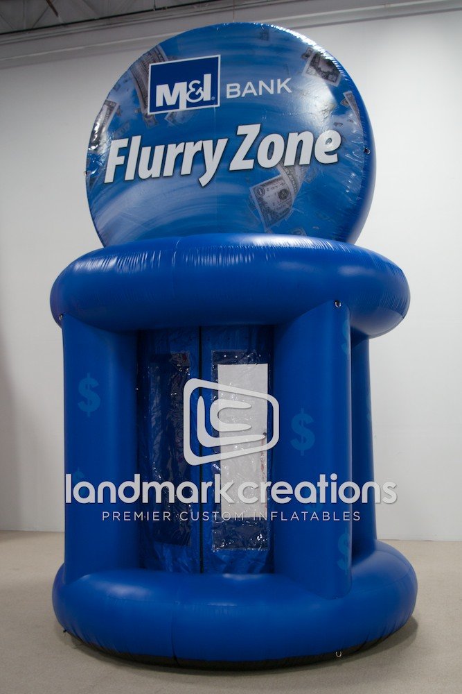 Looking for a way to generate attention at your marketing events? Inflate a cash booth like this inflatable Flurry Zone for M&I Bank.