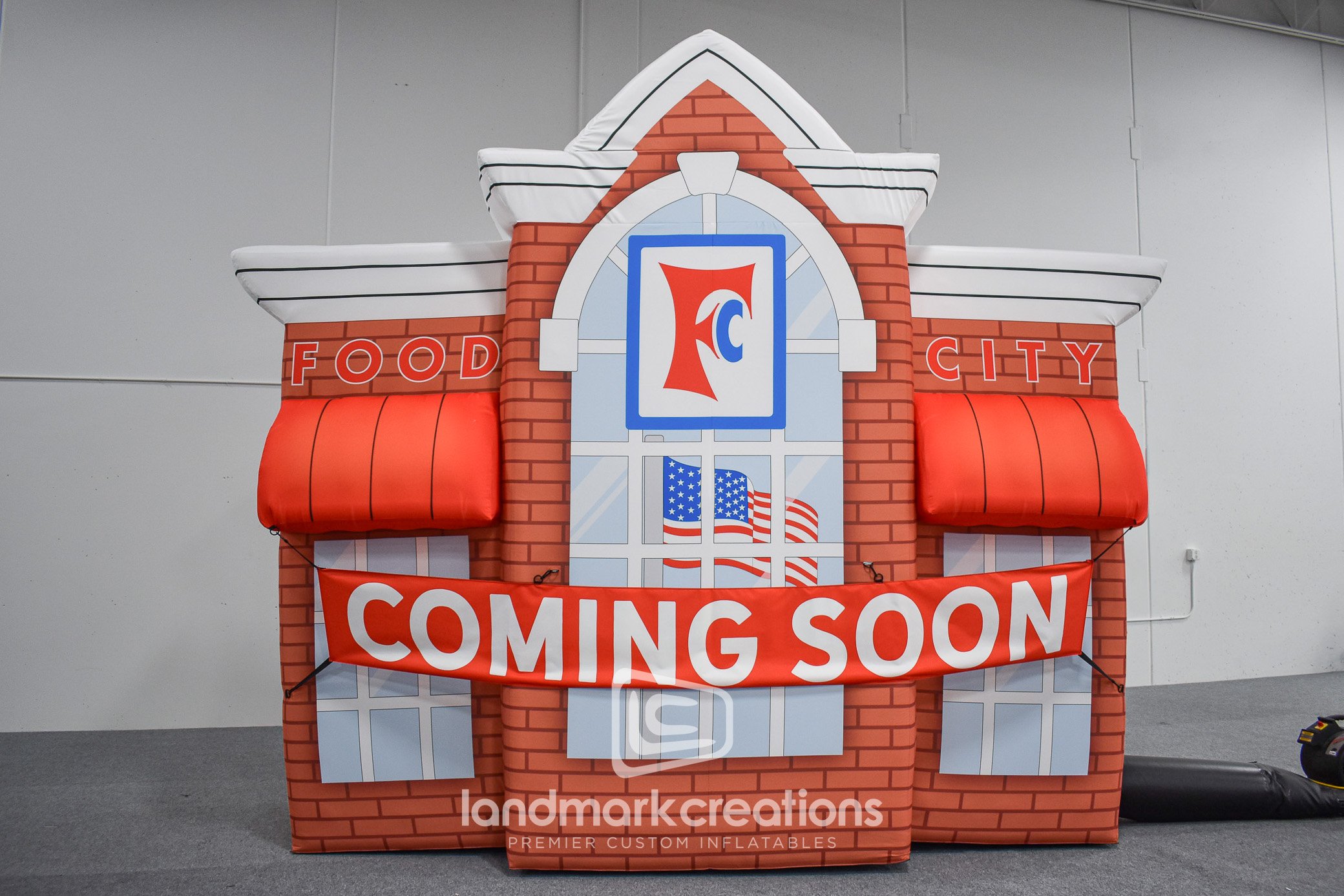 Food City partnered with Smoky Mountain Balloon Adventures to develop a versatile inflatable storefront replica. Designed to promote new store locations at high-traffic events like NASCAR, this inflatable replica can be easily customized with interchangeable banners for each occasion. Its durable construction ensures long-term use, making it an ideal centerpiece for outdoor promotions and drawing attention wherever it's displayed.