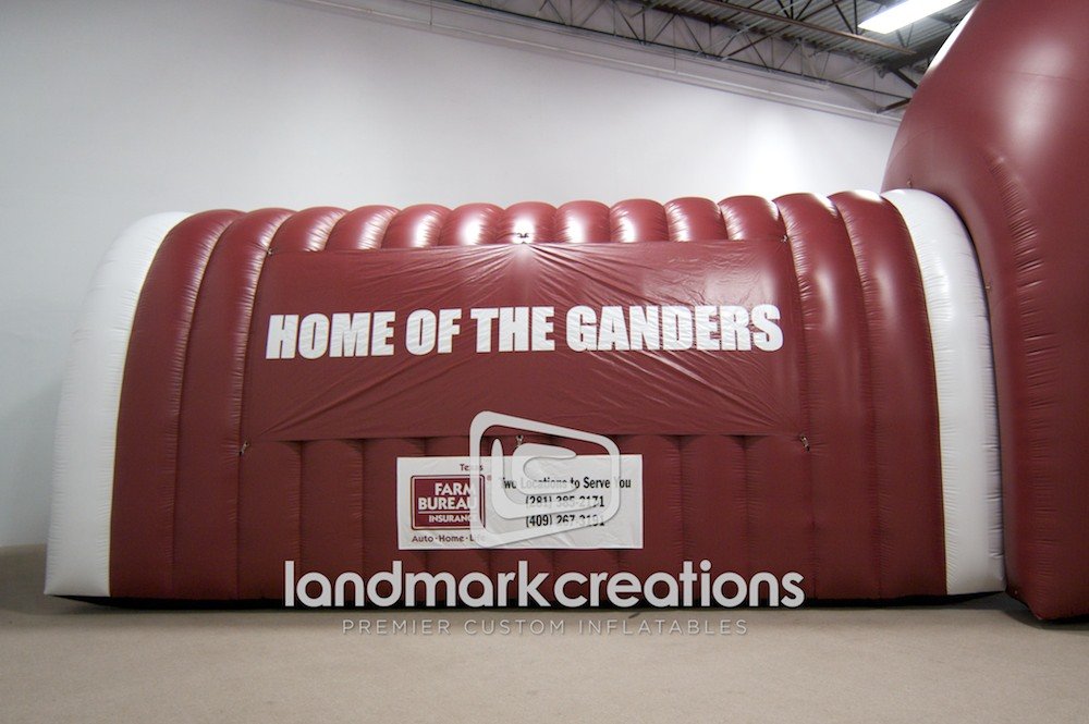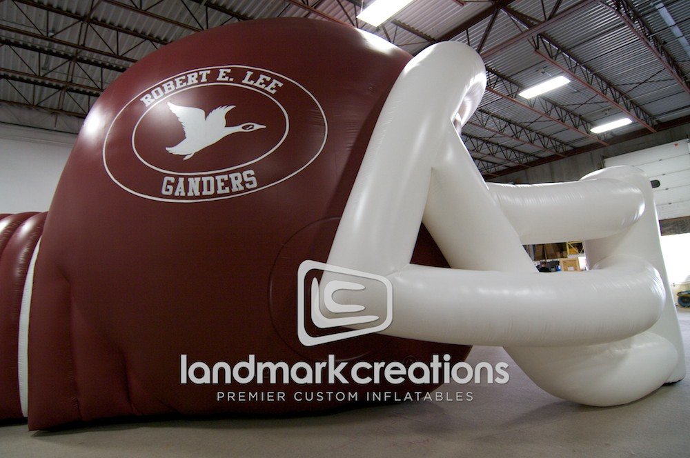 Inflatable football helmets with extension tunnels are perfect for making a memorable entrance. All of our inflatable helmets are custom-designed with school colors, emblems and banners.