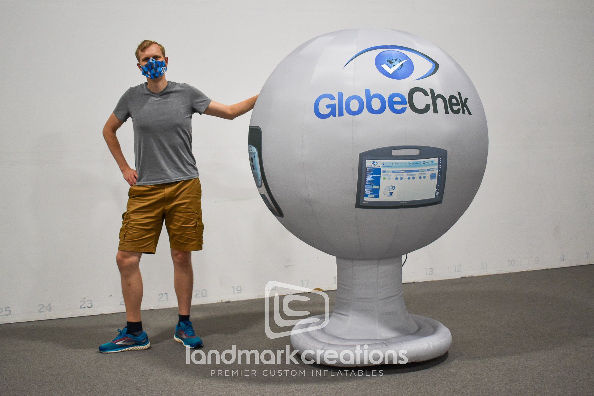 GlobeCheck's promotes its services and its very distinct visual screening device at various events using custom inflatable replicas. Unlike GlobeCheck's screening device, the inflatable displays are light weight and pack into small containers, making them easy to transport between locations.