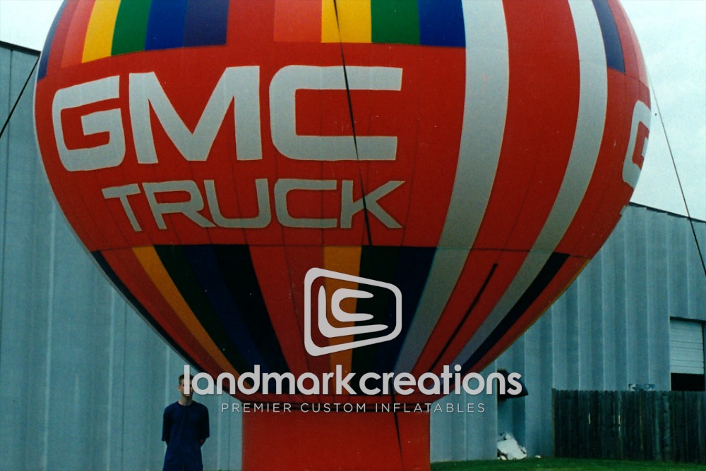 This GMC truck hot air balloon replica serves as a striking display for automotive marketing events. Designed with intricate details, it captivates audiences and reinforces brand identity.