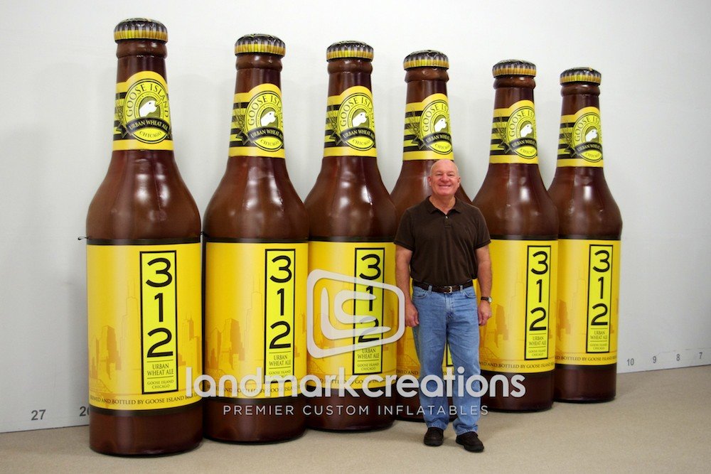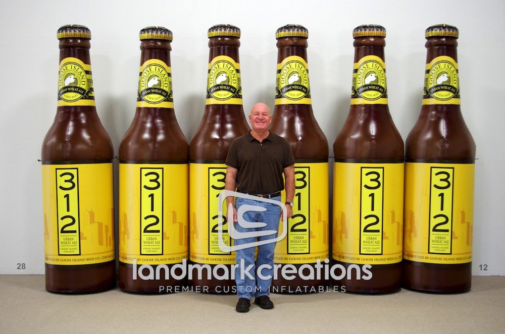 Goose Island Beer inflatable bottles aren't actually filled with 312, but instead they are kept inflated with a constant cold-air blower to promote their tasty beverages!