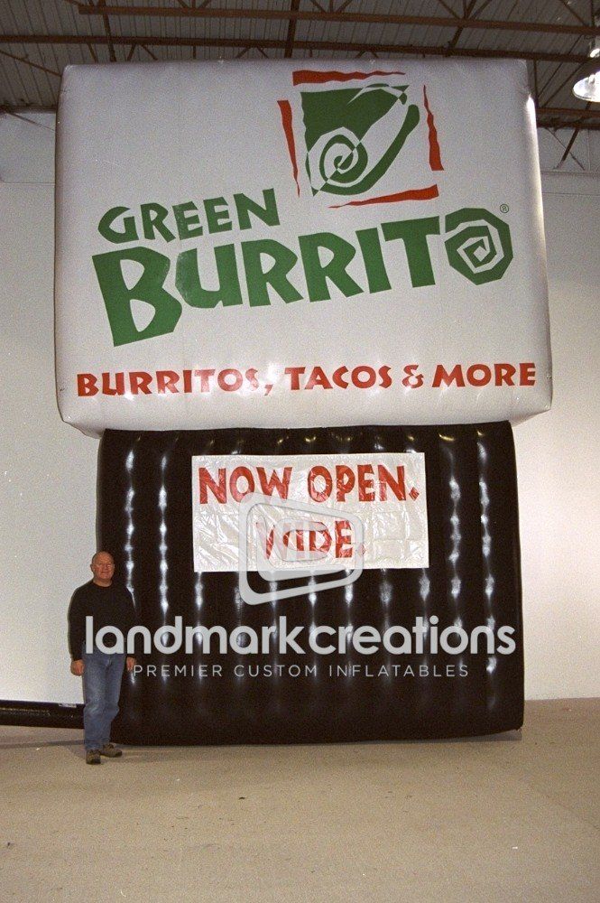 Improve brand recognition with a giant logo or billboard inflatable like this Green Burrito display. Giant inflatable advertisements provide a great visual for grand openings.