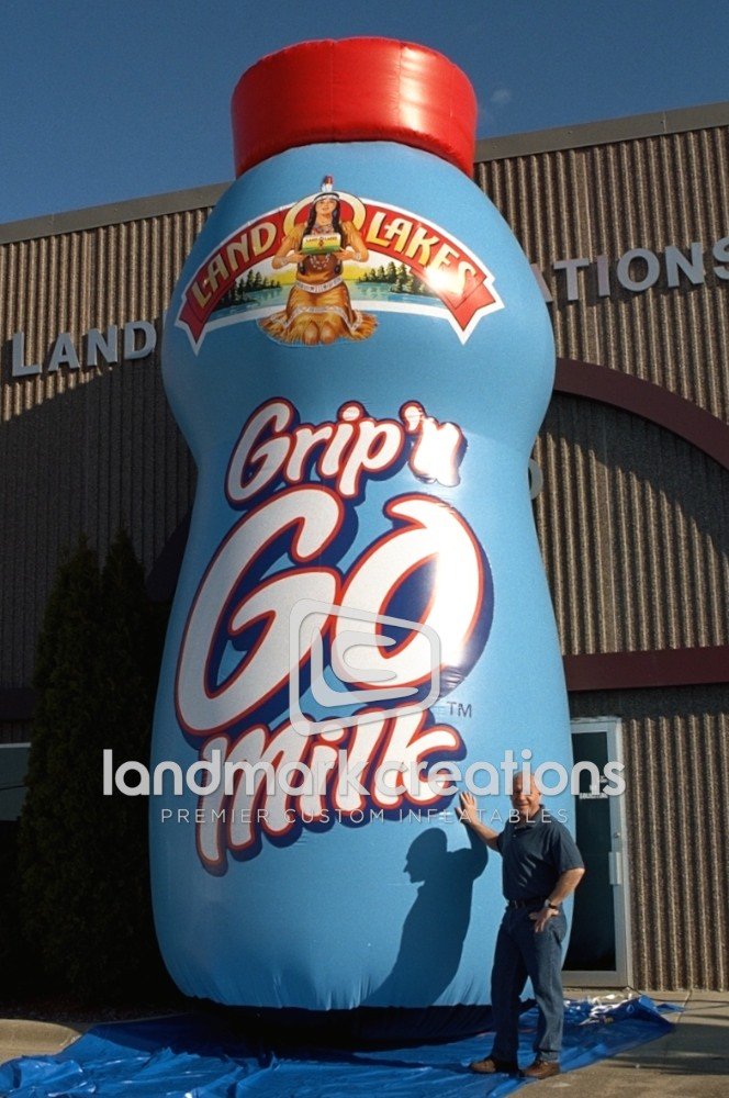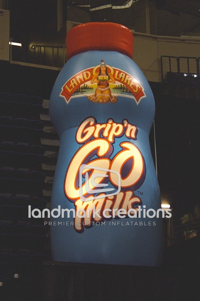 Land O'Lakes used a giant inflatable replica to help launch their new Grip'n Go Milk product. Inflatable product replicas help to spark interest and increase branding at special events.