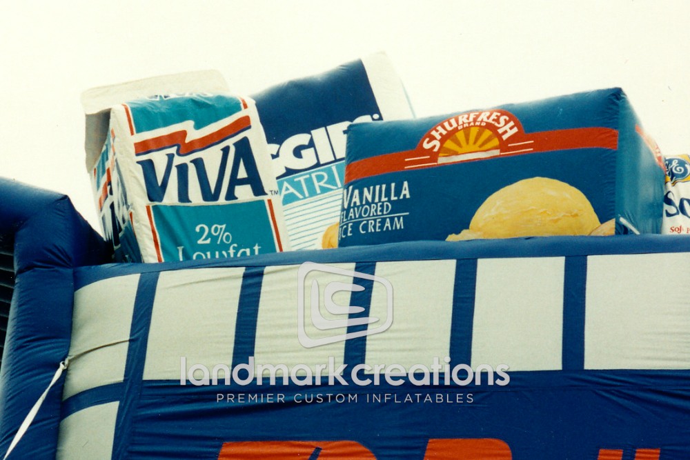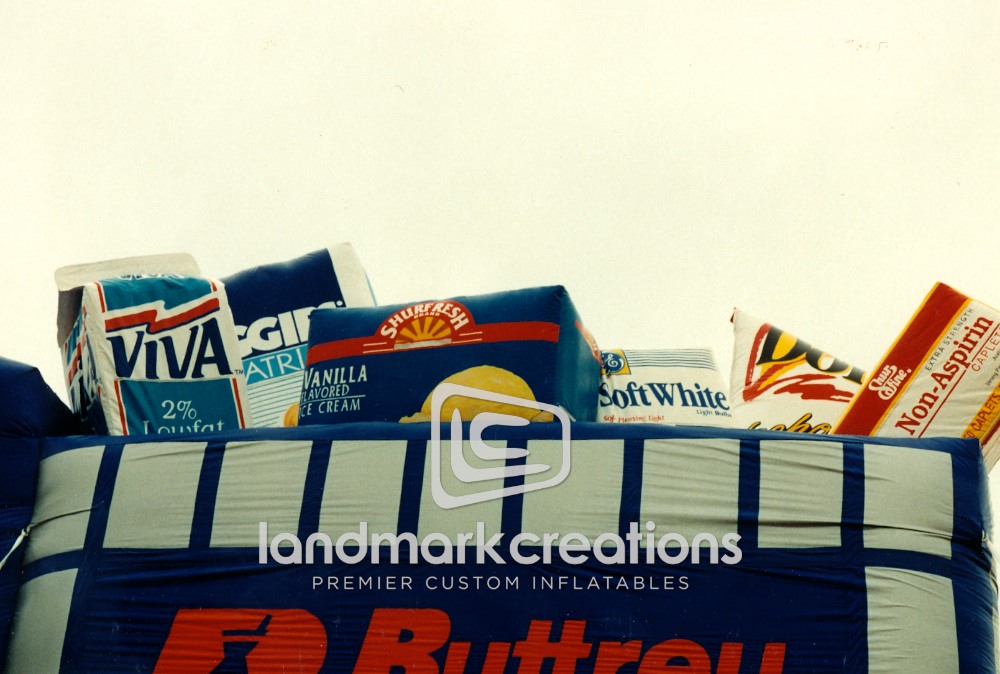 Grocery store chain Buttrey Food & Drug took advantage of co-op advertising dollars and placed a variety of products inside a massive inflatable grocery cart on their rooftop. Custom-designed rooftop inflatables help local grocers and large supermarkets get noticed!