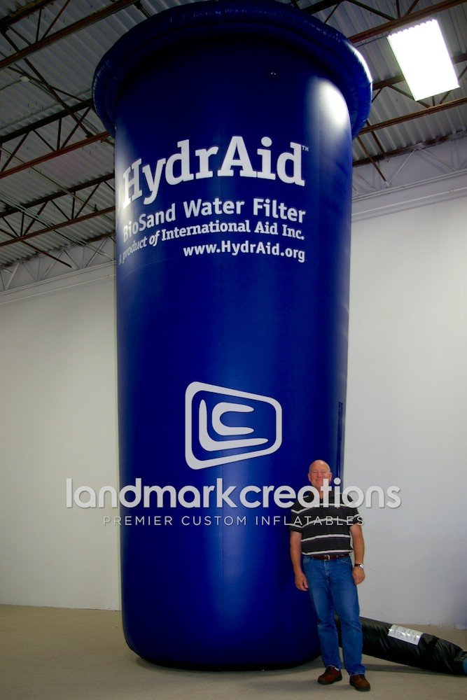 HydrAid promotes their filtration technology by inflating this 20-foot replica of their BioSand filter at marketing events.