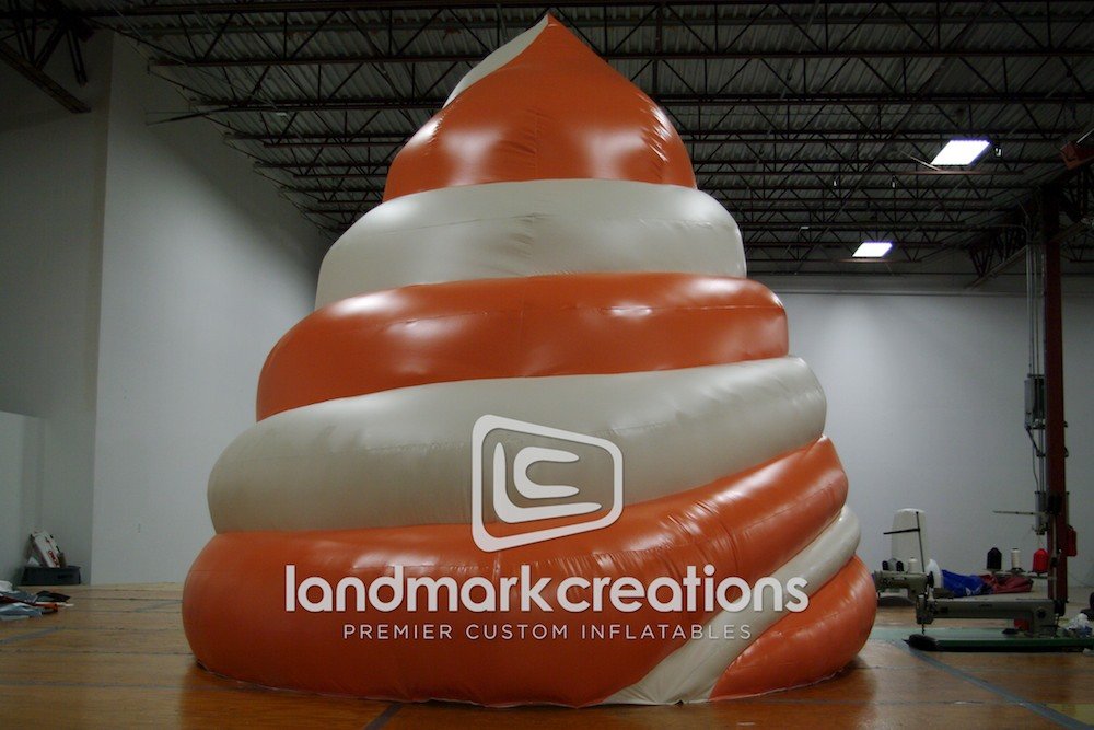 To get mouths watering and attract traffic this giant inflatable swirl-top cone was inflated and placed on the roof of an ice cream parlor!