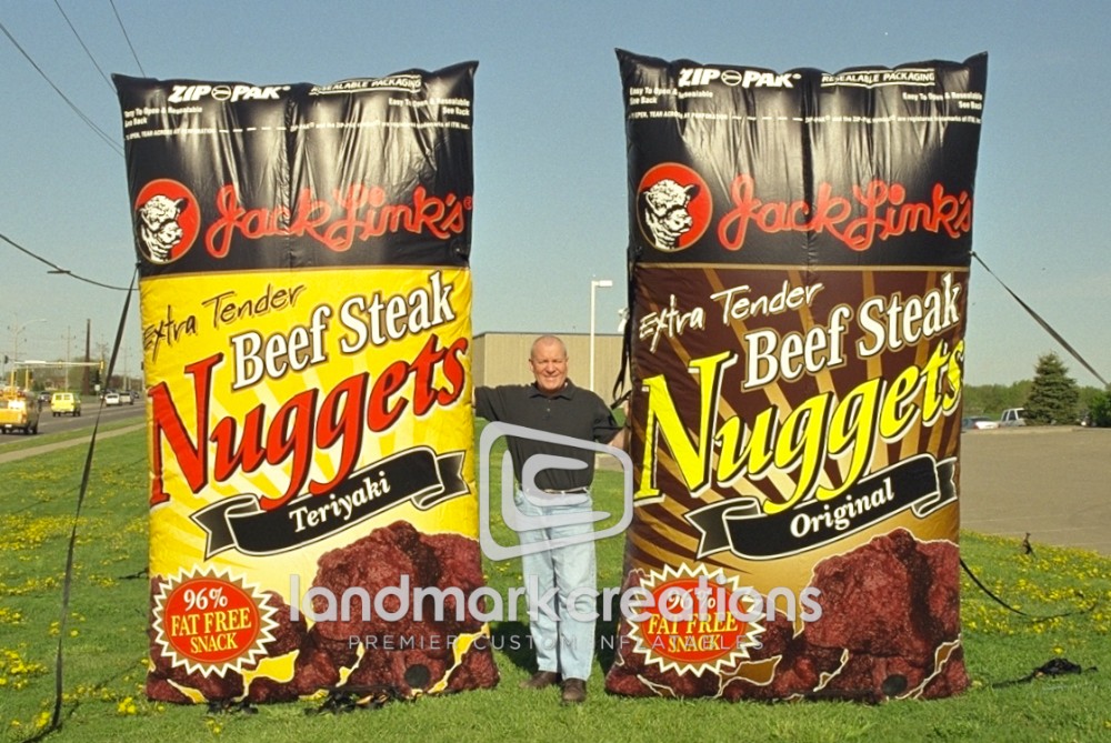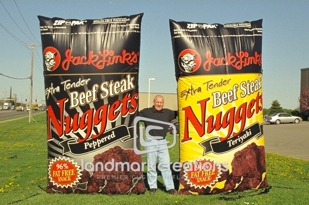 Jack Link's Beef Jerky used these 10 foot product replicas to increase buzz and attract attention to their newest product, Beef Steak Nuggets.