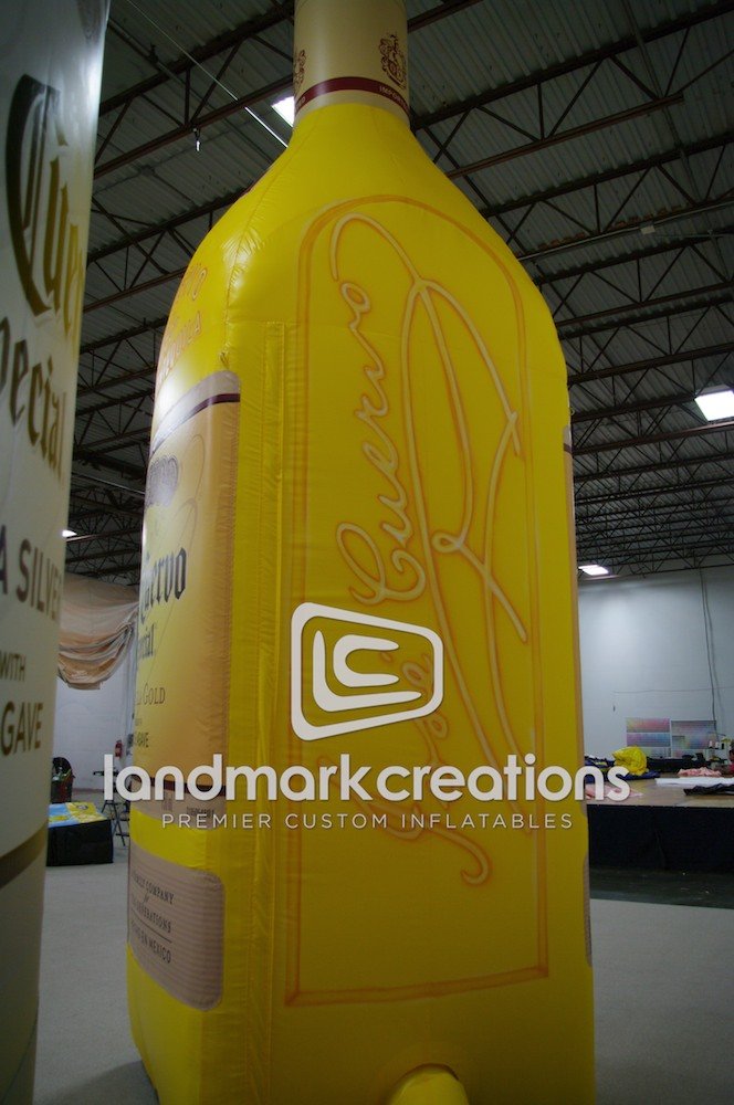 Custom inflatable product replicas, like this 20-foot Jose Cuervo tequila bottle, add a wow factor to events. This giant Cuervo bottle attracts crowds and reinforces future brand remembrance at liquor stores.