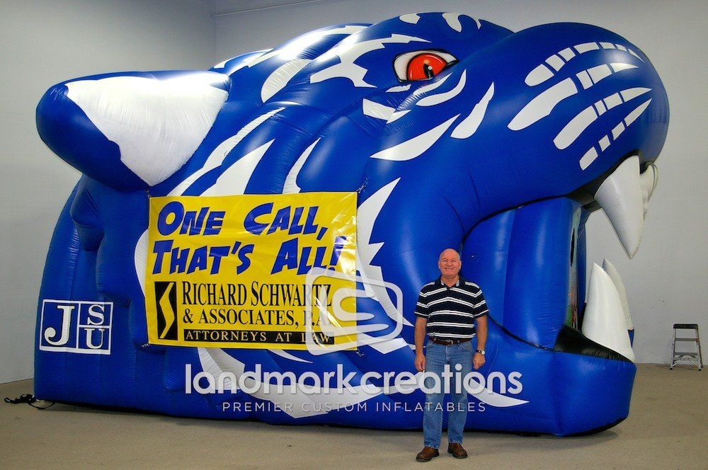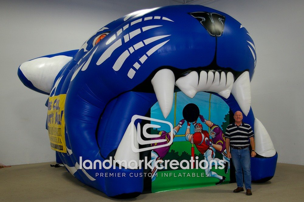 One part inflatable tiger tunnel, one part football toss. Jackson State University inflatable tunnel does double duty at sporting events attracting lots of attention.