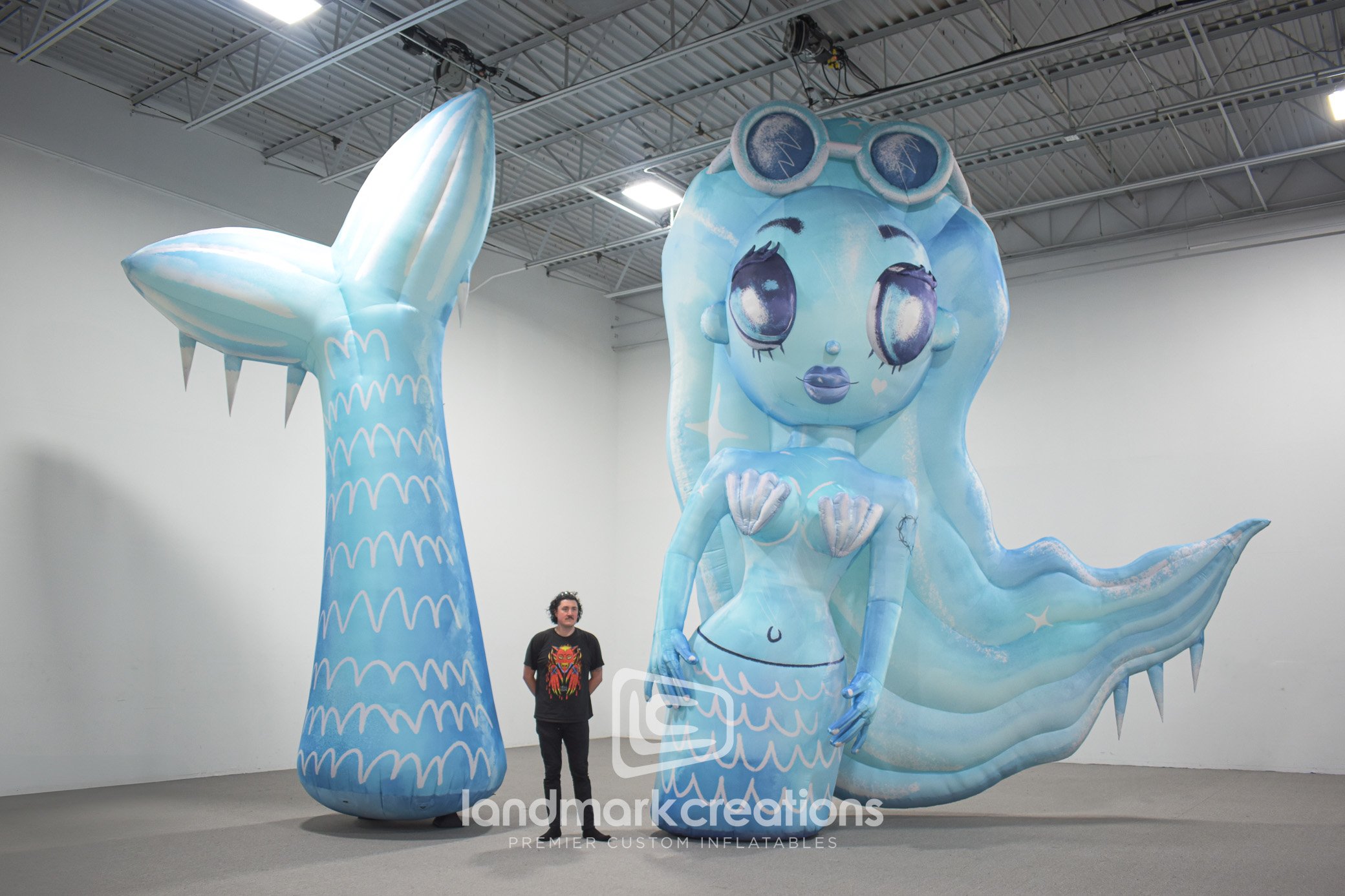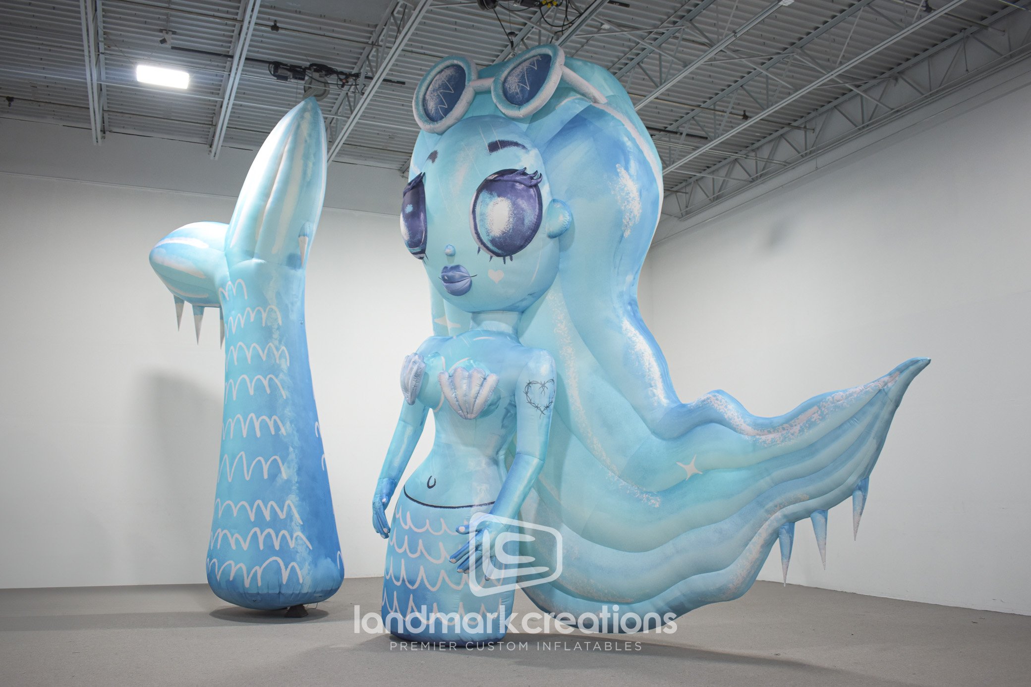 Landmark Creations collaborated with The Squared Division to craft a stunning custom inflatable for Karol G's Mañana Sera Bonito Tour. This two-piece inflatable, featuring a mermaid torso and tail, was meticulously designed to fit stage lift dimensions, creating a striking visual that enhances the tour’s stage set. Perfect for stage productions and large-scale concerts, this inflatable demonstrates our expertise in scenic displays.
