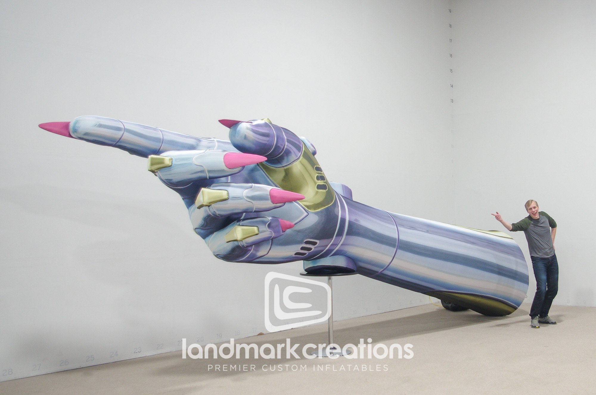 This otherworldly 25-foot-high robot arm was built as part of the set for Katy Perry’s headlining set at the 2019 OnePlus Music Festival in Mumbai. Although the surface may seem reflective, it’s not- the “digital chrome” fabric was specially designed for an illusory effect!