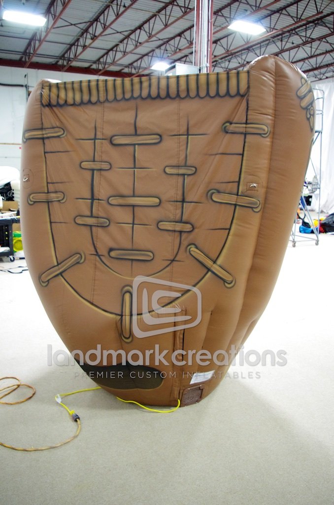 Here's a home run holiday display idea! This giant inflatable baseball glove for the Charlotte Knights was placed inside a giant snow globe and displayed on a float during holiday parades!