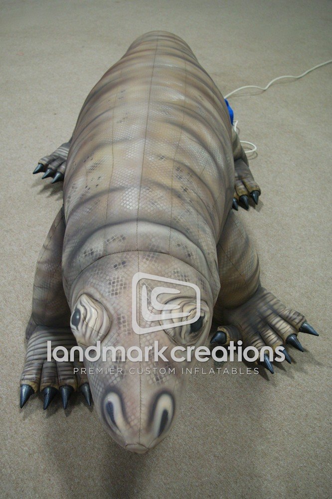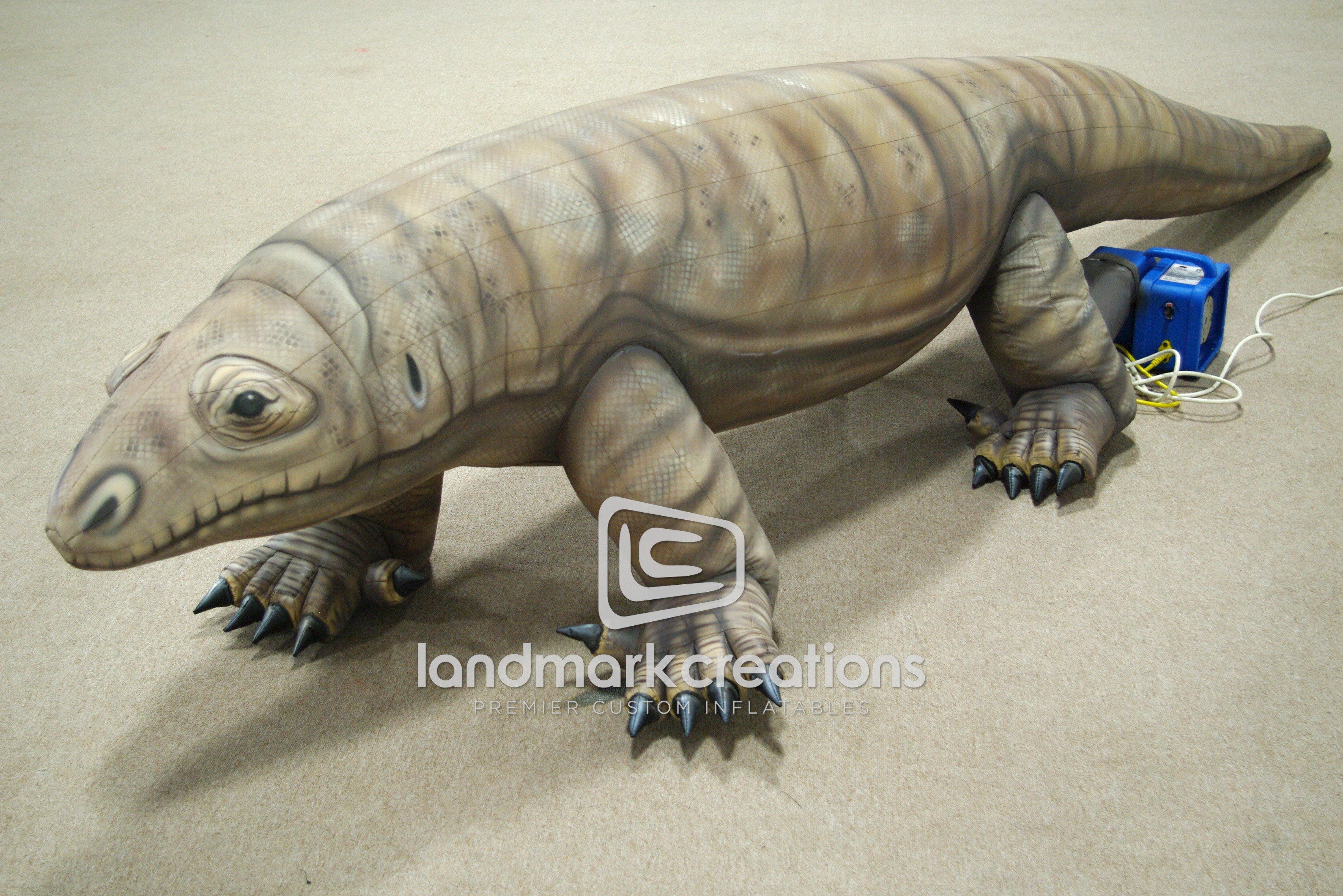 Environmental Outpost Programs hosted by the Delaware AeroSpace Education Foundation use inflatable wildlife replicas, like this Komodo dragon, to increase children's interest in science and technology.