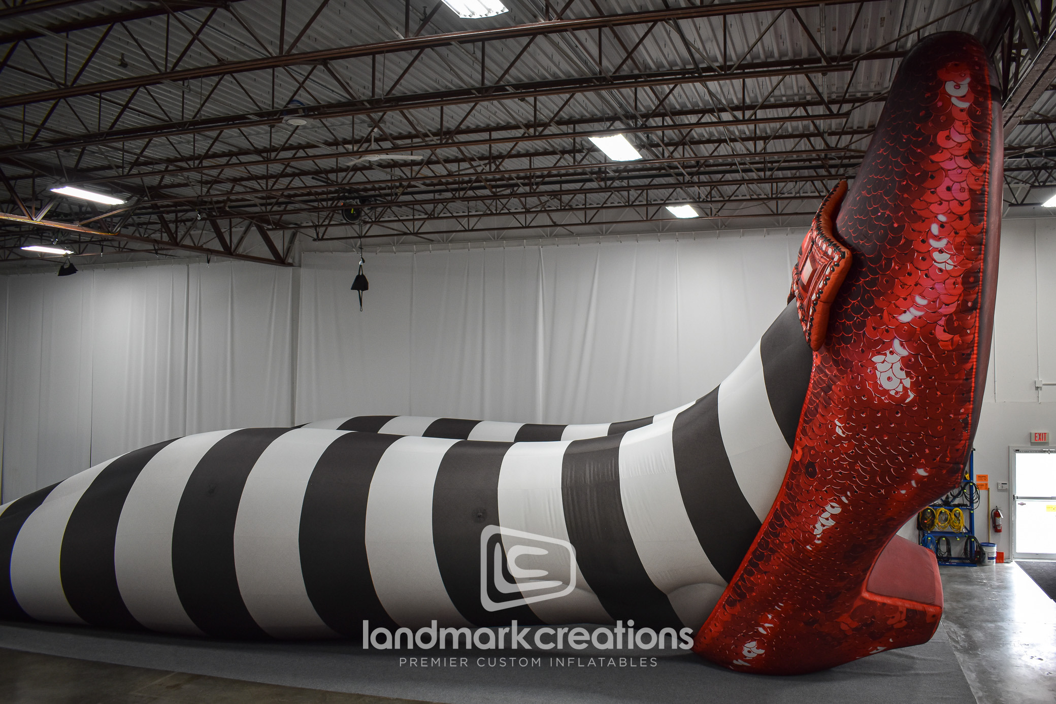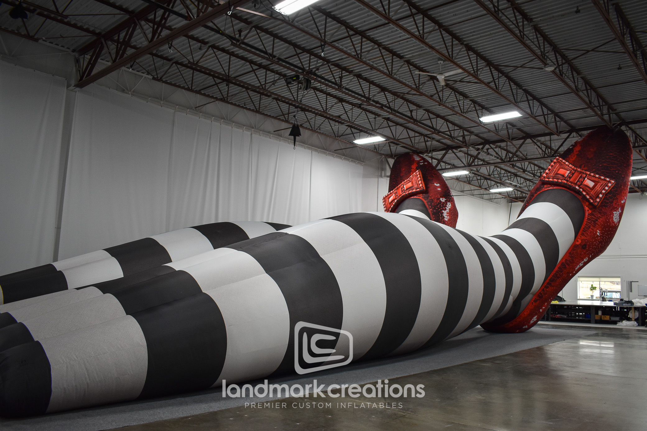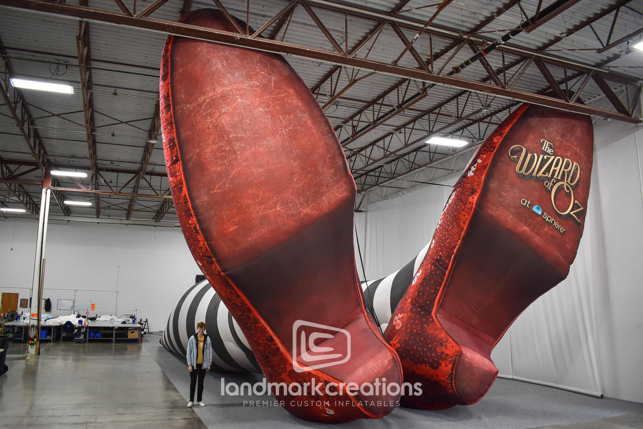 To help bring The Oz Experience to life outside The Sphere in Las Vegas, MSG Entertainment partnered with Landmark Creations to produce a towering pair of inflatable legs wearing ruby slippers. Standing 26 feet tall, this custom inflatable sculpture created a whimsical, oversized photo op for fans and media alike. Designed for medium-term outdoor use, the display helped boost engagement, support a themed environment, and generate social buzz during the activation.