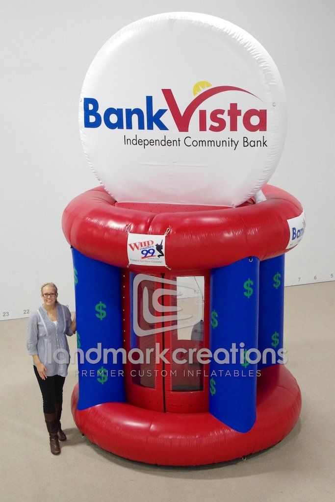 Radio stations in St. Cloud, MN, use this inflatable money machine to attract buzz at special events! Wild Country 104.7 and Lite Rock 99.9 share the inflatable cash booth, thanks to interchangeable branding logos. Now that's smart marketing!