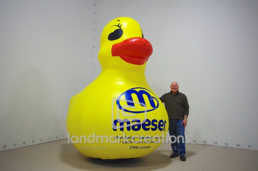 Maeser Master Services, a plumbing, heating and cooling company, advertises their services at a variety of marketing meetings with the help of this inflatable duck mascot. Custom designed to be a replica of their mascot, the inflatable duck sparks interest in their business!