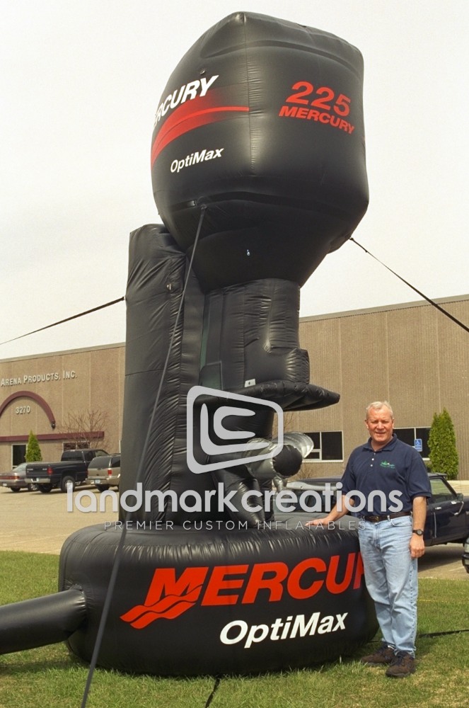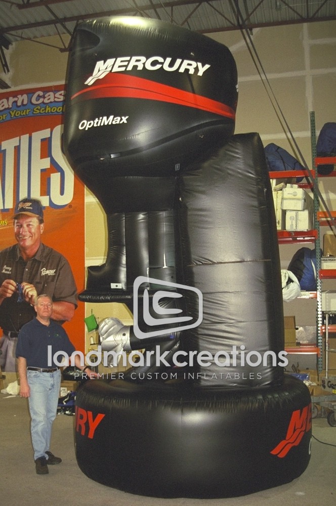 Mercury Marine used their inflatable boat motor replica to announce the launch of the OptiMax motor at boat shows and fishing events.