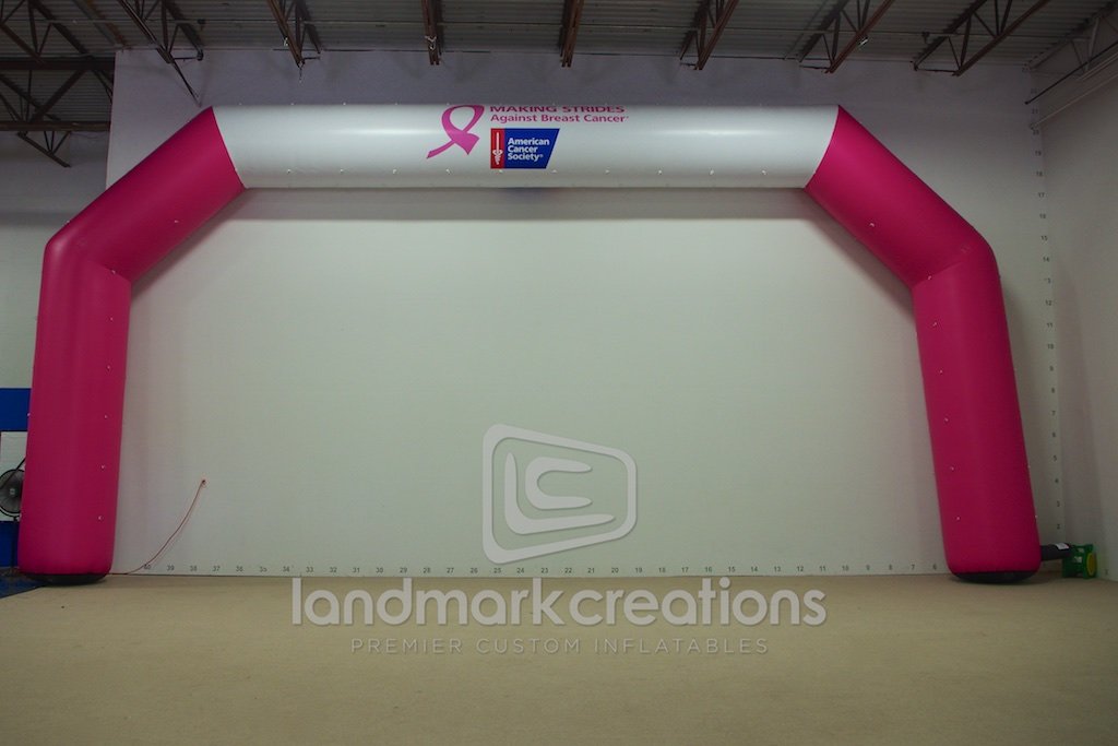 The American Cancer Society inflates this perfectly pink arch for Making Strides Against Breast Cancer events! The inflatable archway welcomes fundraising participants and breast cancer survivors to events throughout the month of October.
