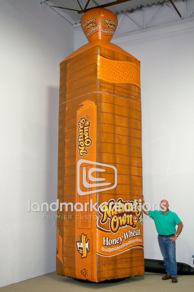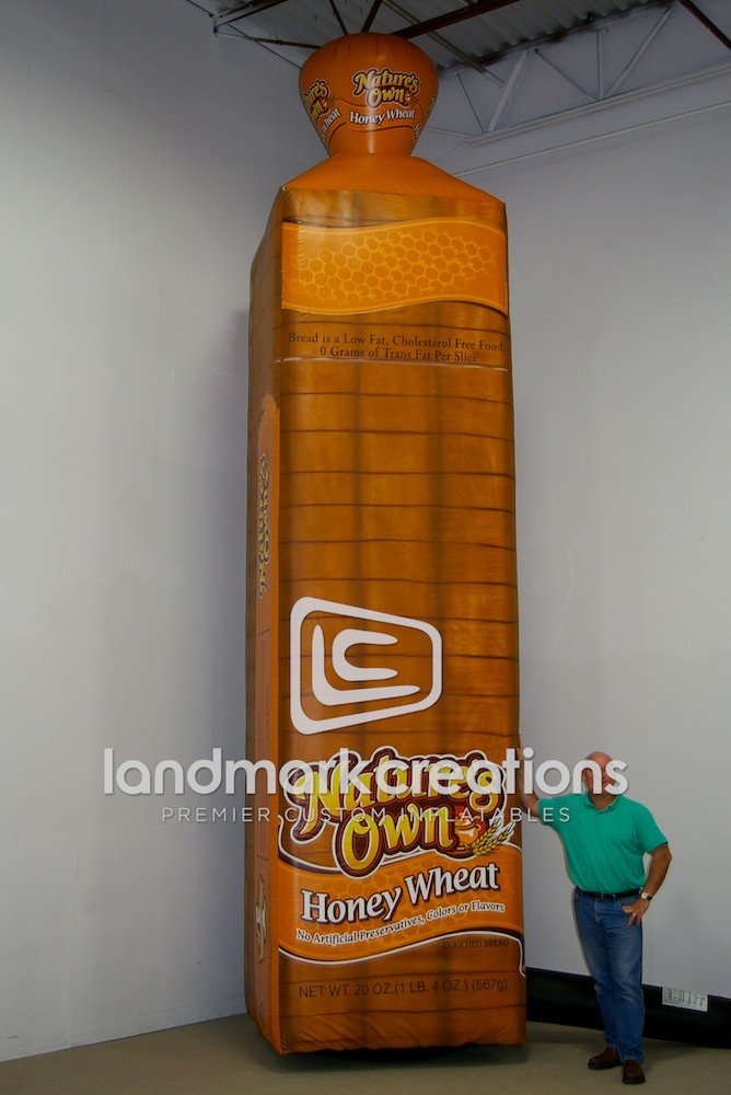 Attract hungry consumers with inflatables! Nature's Own uses this towering inflatable replica of their Honey Wheat bread outside of grocery stores to spark curiosity and increase brand remembrance as shoppers head inside.