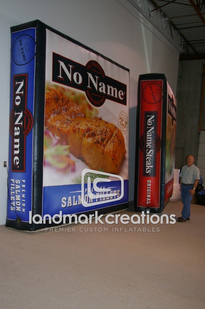 No Name, based in Minnesota, uses these inflatable replicas of their packaged steaks and salmon to promote specials at retail locations and grocery stores.