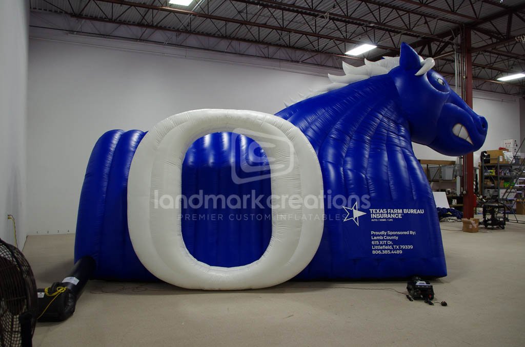 This inflatable sports tunnel was custom designed for the Olton Mustangs and is easily set up and taken down for repeated use at a variety of school events.