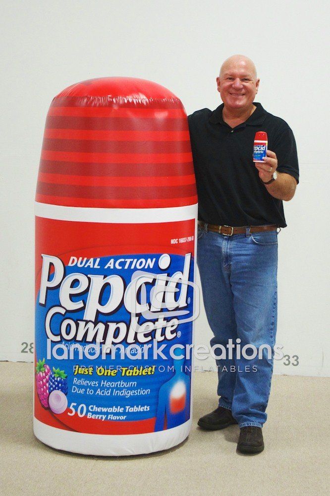Promotional inflatables, like this Pepcid Complete bottle, are 100% custom created to look like a duplicate of the product. Product replicas are perfect for events and trade shows because they inflate in minutes & are easy to transport between events.