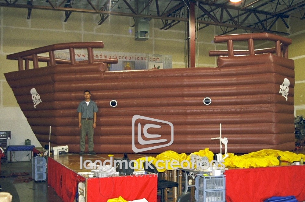 Dana Kunze's Watershow Productions Inc., a premier aquatic entertainment company, uses this replica of a pirate ship for Dueling Pirates and Pirates of the Caribbean shows.